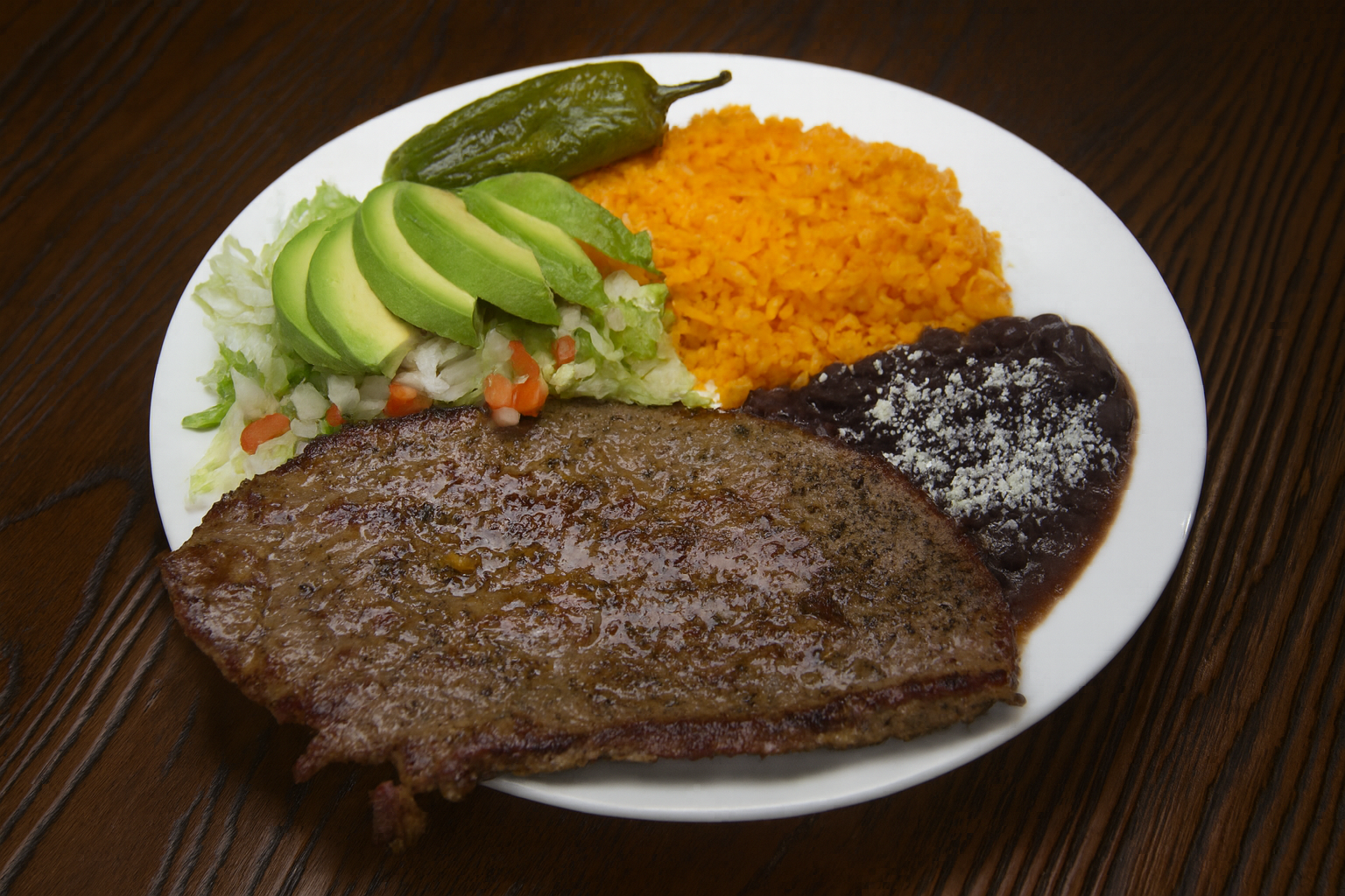 Served with 4 corn tortillas. Rice, beans, Cotija cheese, lettuce, Pico de Gallo, avocado, grilled jalapeno. Green sauce, and red sauce.