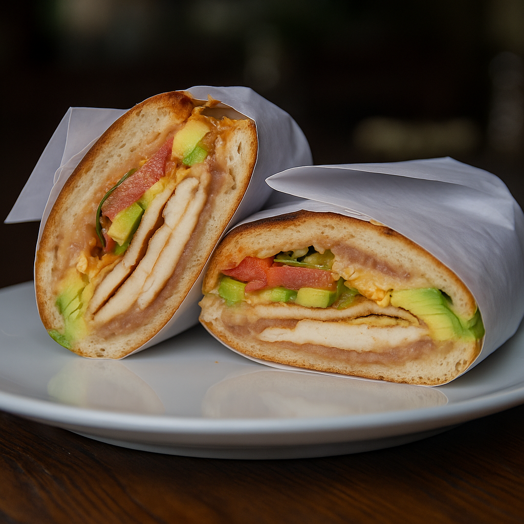 Comes with refried pinto beans, mayonnaise, lettuce, tomato, cheese, avocado & jalapeños.