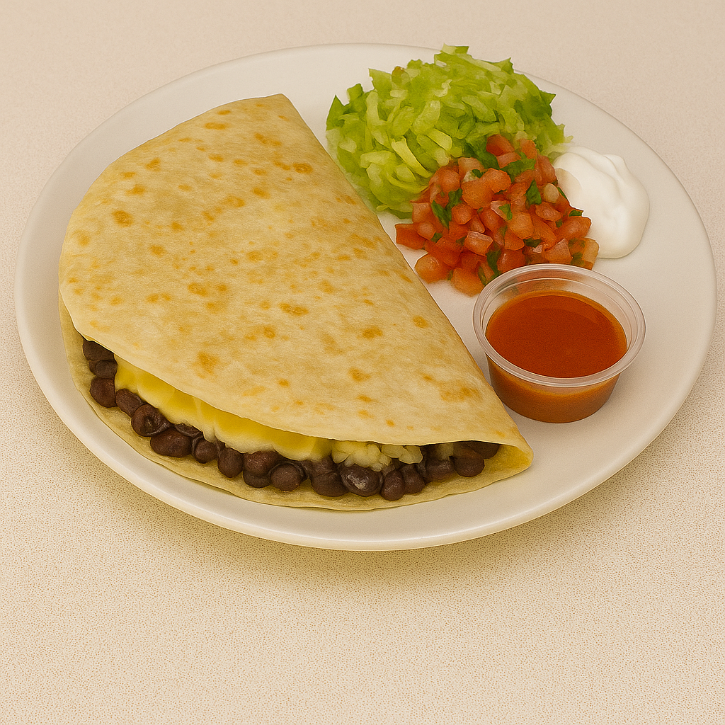 Comes with rice, black beans & cheese inside the flour tortilla. On the side comes with lettuce, pico de gallo, sour cream & hot sauce.